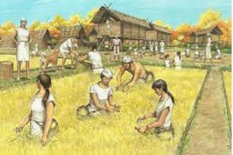 このような時代背景のもとで普及した稲作の生産性は格段と向上し食べきれないほどの食料が得られるようになりました。しかしながら、その収穫量は栽培技術の差に加え天候と土地の稲作適合性に左右され地域的に収穫量と、その備蓄量に差が出てくるとことから冨の蓄積が可能となり、それは地域的に足りるところと足らざるところを生みだすこととなりました。それにより、やがて地域同志の収穫物と土地の奪い合いが始まることとなり地域間の争いが始まったとされています。