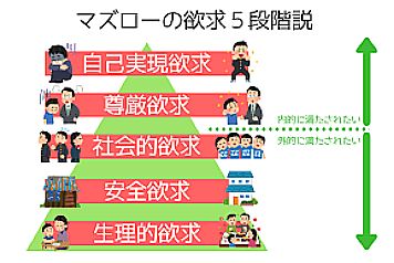 これは、まさに 「マズローの欲求の5段階説」の第3段階 社会的欲求および、第4段階 尊厳欲求で説明されている社会との関わりから生まれる欲求と類似していると考えられます。